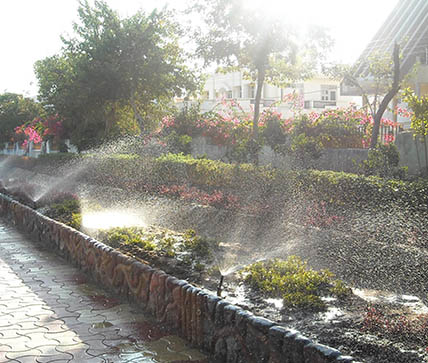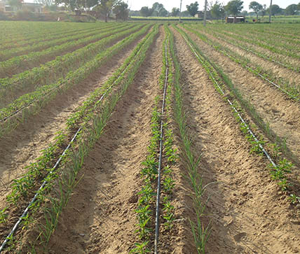 Drip irrigation is a type of micro-irrigation system that has the potential to save water and nutrients by allowing water to drip slowly to the roots of plants, either from above the soil surface or buried below the surface. The goal is to place water directly into the root zone and minimize evaporation. Drip irrigation systems distribute water through a network of valves, pipes, tubing, and emitters. Depending on how well designed, installed, maintained, and operated it is, a drip irrigation system can be more efficient than other types of irrigation systems, such as surface irrigation or sprinkler irrigation.